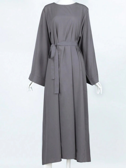 Open Front Button-Down Abaya with Matching Hijab | Gray