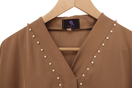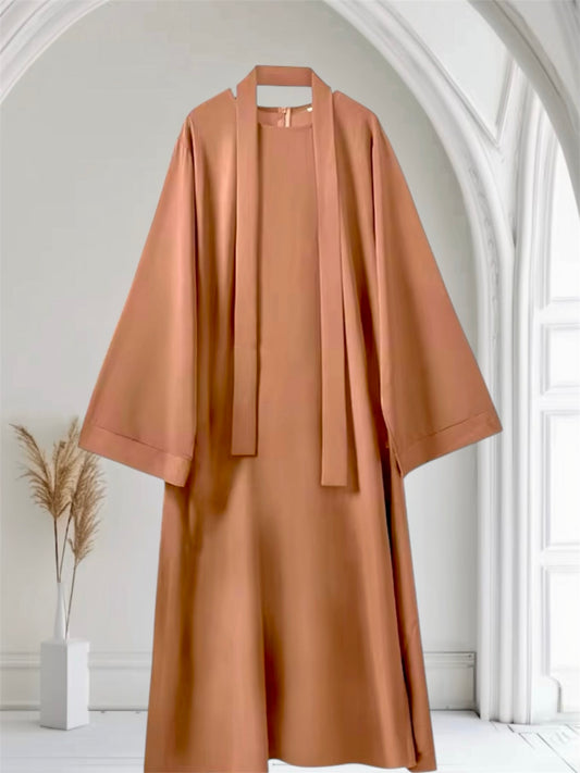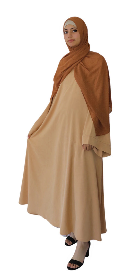Open Front Button-Down Abaya with Matching Hijab | Light Brown
