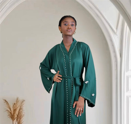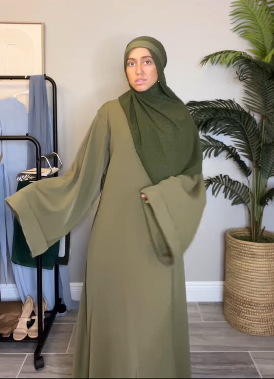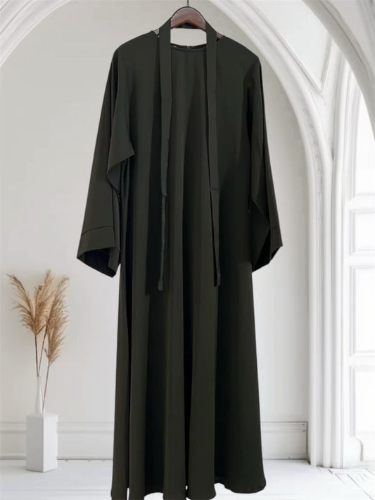 Open Front Button-Down Abaya with Matching Hijab | Dark Green