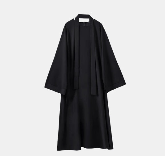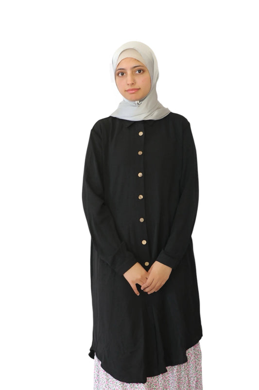 Open Front Button-Down Abaya with Matching Hijab | Black