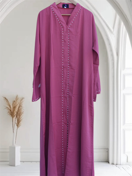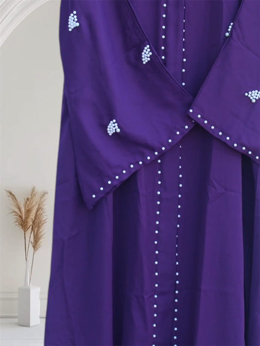 Open Front Button-Down Abaya with Matching hijab | Plum