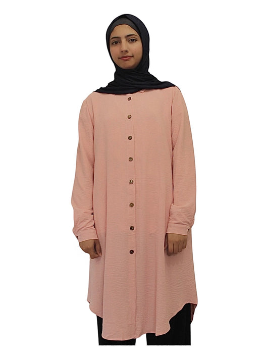 Open Front Button-Down Abaya with Matching Hijab | Pink